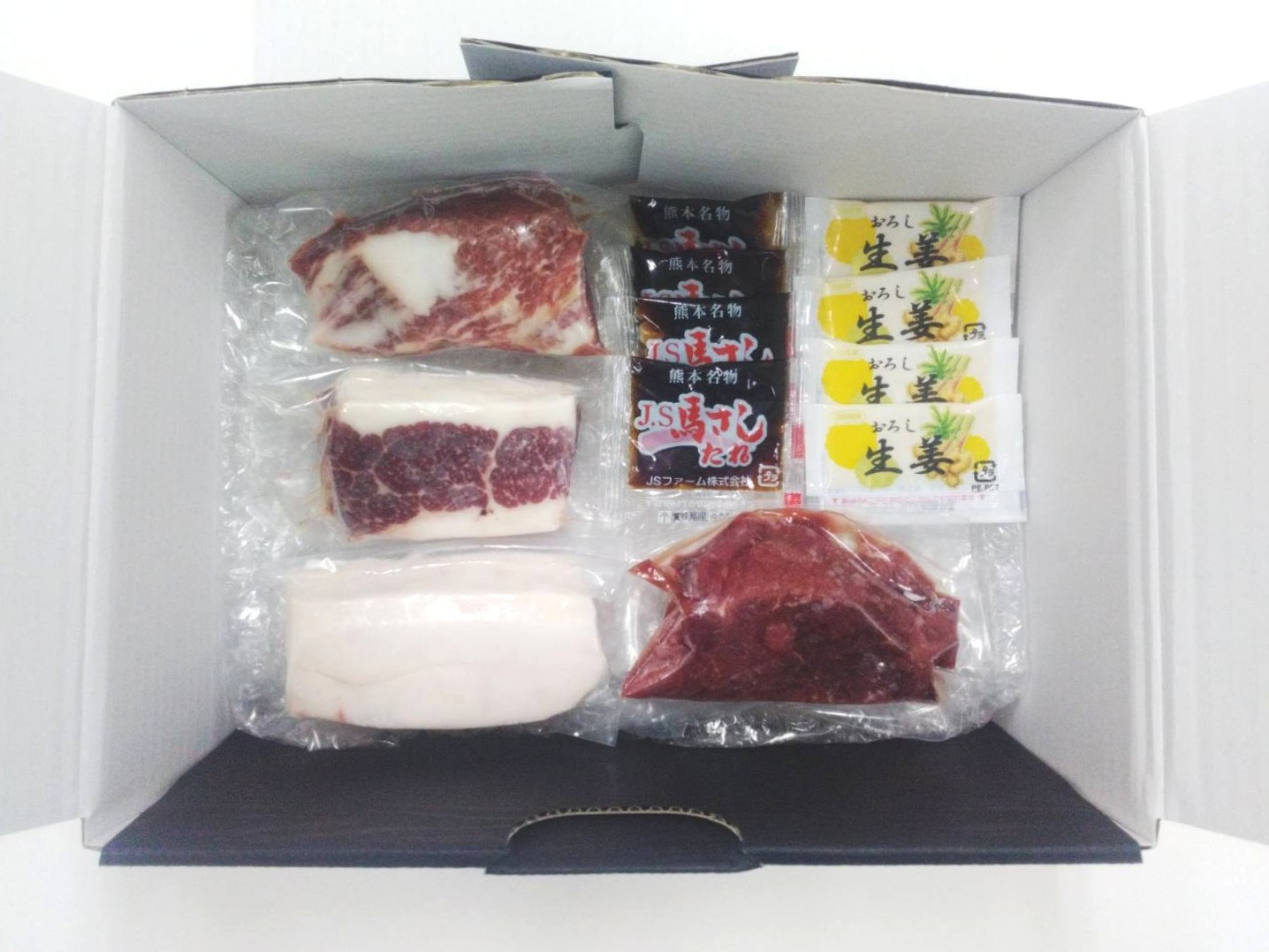厳選したカナダ産馬または国産馬を、自然豊かな熊本阿蘇の牧場で飼育し、厳しい安全管理の下加工した熊本「馬刺し」です。